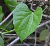 This herbaceous vine of the family Menispermaceae is indigenous to the tropical areas of India, Myanmar and Sri Lanka. It is a large climbing shrub with elongated twining branches spreading extensively. A special feature is the presence of wiry aerial roots arising from the branches. Stems are rather succulent, creamy white to grey, deeply cleft, papery bark and rosette-like pores (lenticels).